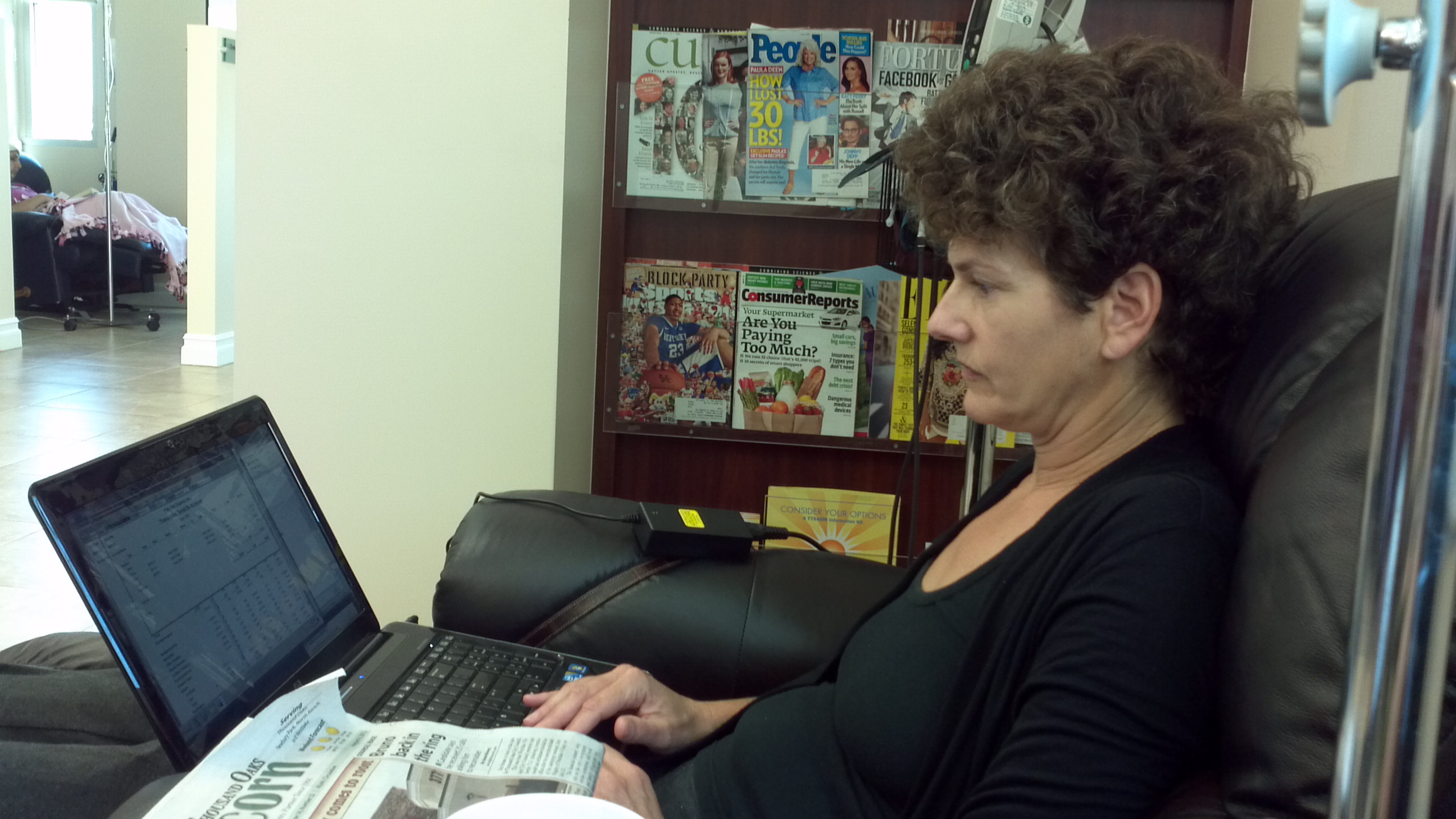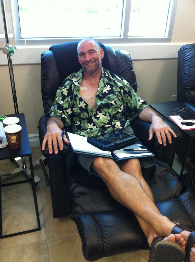Putting my power port to good use at the doc’s luxury chemo club. The last 2 days were encouraging – the original pains that led me to the hospital seem to be healing and the chemo pains became more manageable. After this round I should be able to differentiate between symptoms of the disease and the cure. 2 hours down, 1 go to…