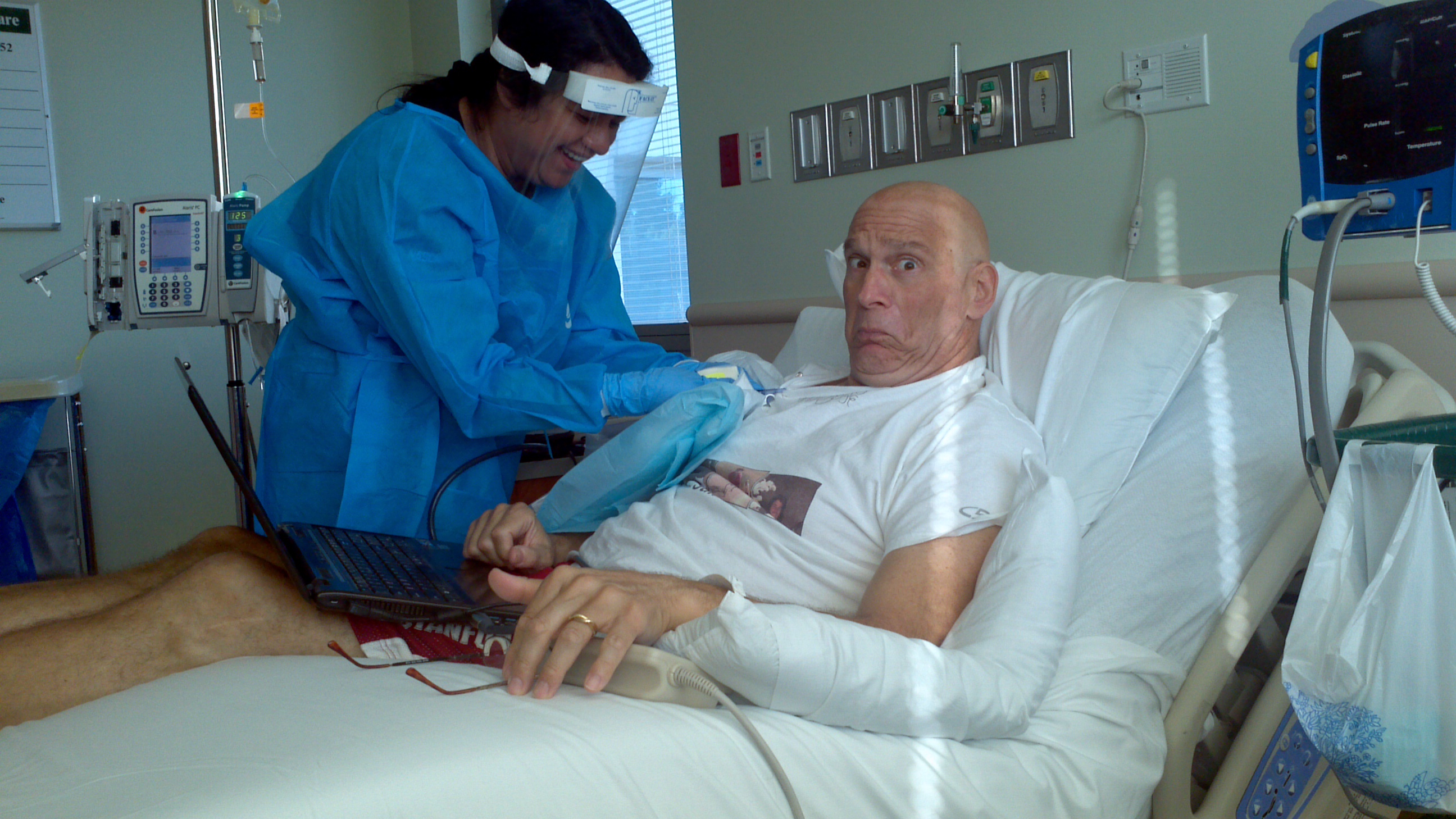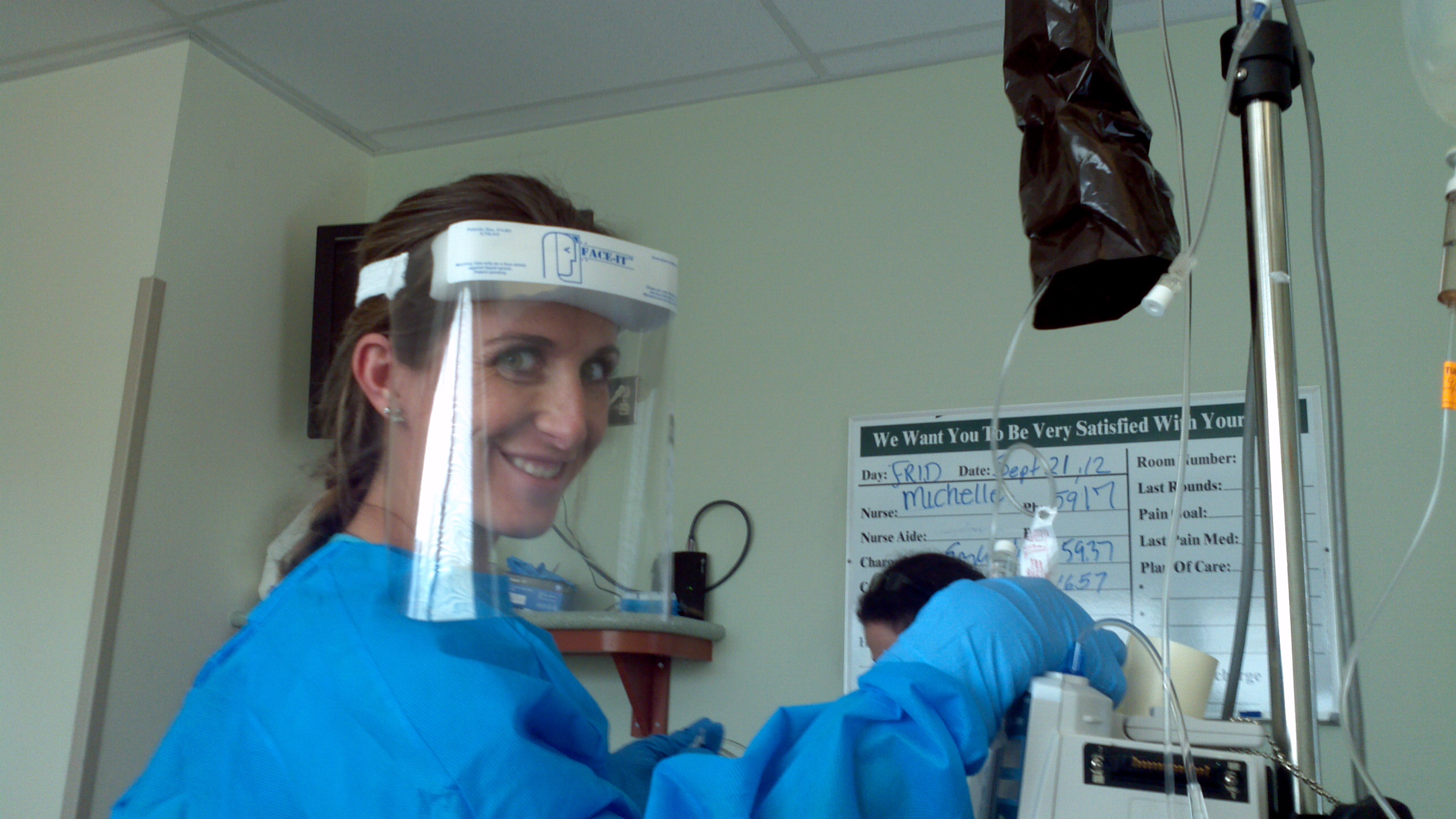 Thought you’d enjoy these pictures of the nurses geared up for protection from the stuff they’re just PUTTING INTO MY BODY!