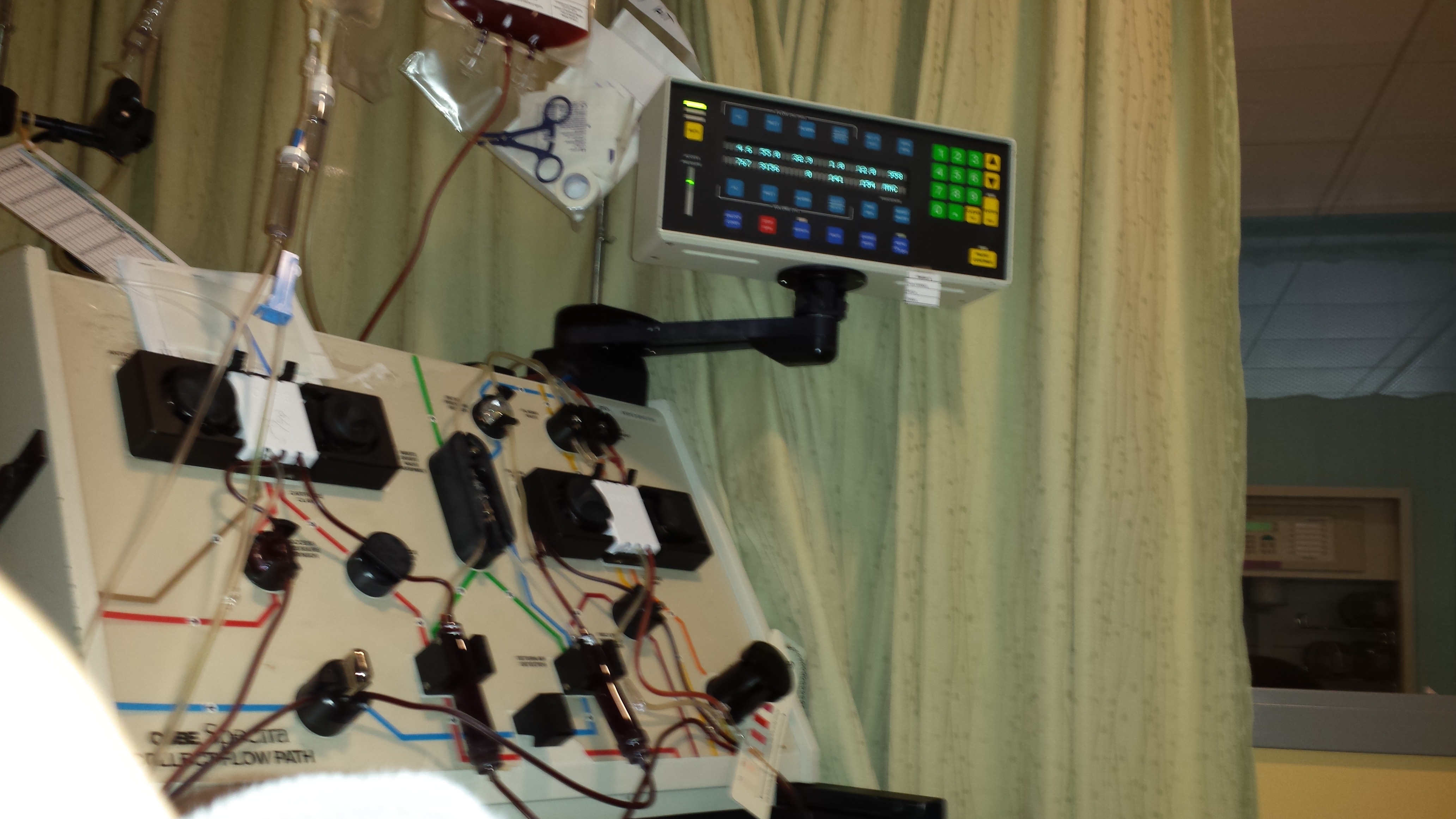 My counts were good this morning, so they hooked me right up to the centrifuge! A pint of my blood (at a time) is in this machine being spun at just the right speed to extract those extremely useful little stem cells that will be used to reboot blood and immune cell production in my body in just a few weeks.