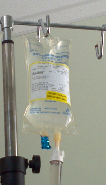 The first of the toxic chemicals being dripped into my port…die, lymphoma, DIE!